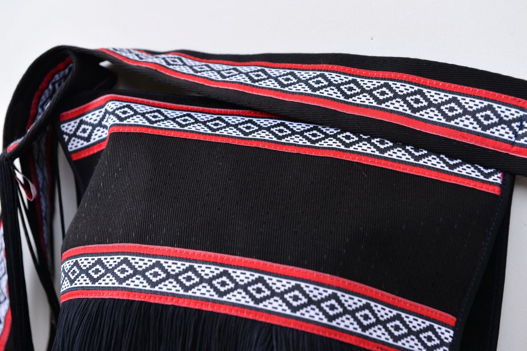 精美背帶,菱紋原民圖騰。