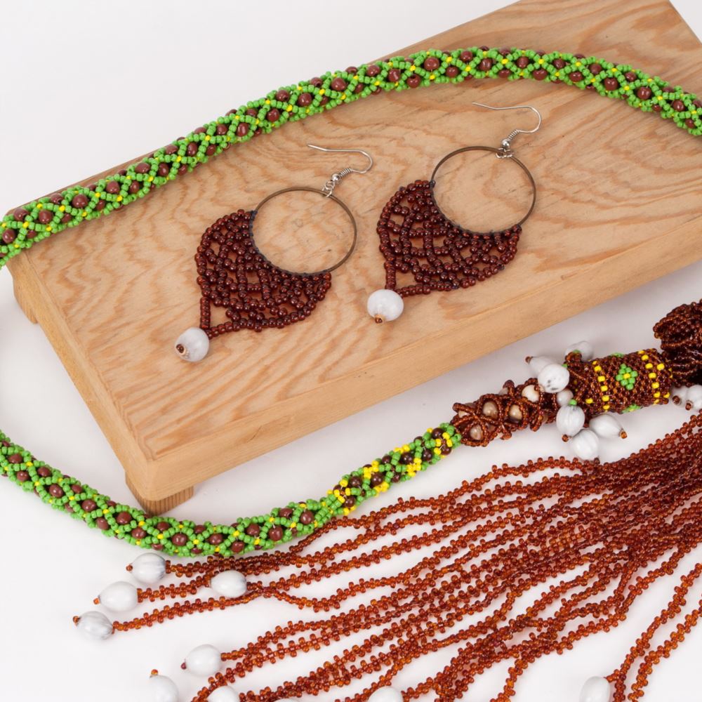 以在地原生植物的果仁薏苡珠(鴨母珠)做成原民風格的精美飾品,如手鍊、項鍊、耳環、別針,薏苡珠在女性飾品上都有很多表現的空間,陳美玉女士有開設課程推廣教授薏苡珠飾品DIY串珠的體驗課程。