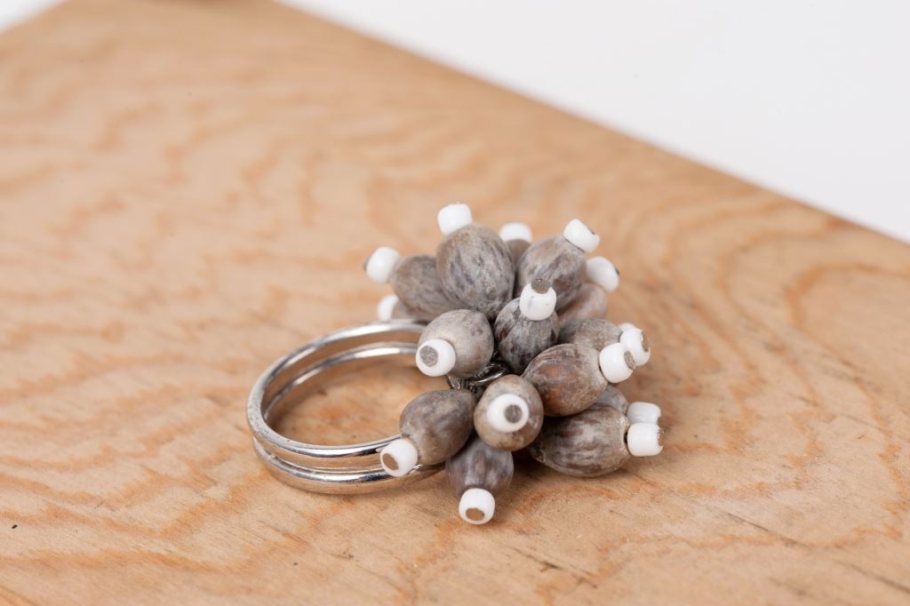 以在地原生植物的果仁薏苡珠(鴨母珠)做成原民風格的精美飾品,如手鍊、項鍊、耳環、別針,薏苡珠在女性飾品上都有很多表現的空間,陳美玉女士有開設課程推廣教授薏苡珠飾品DIY串珠的體驗課程。