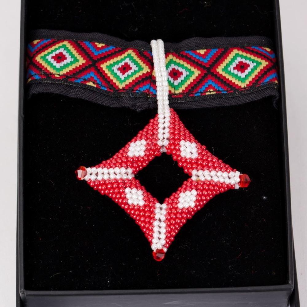 編珠圖紋、原民風格。