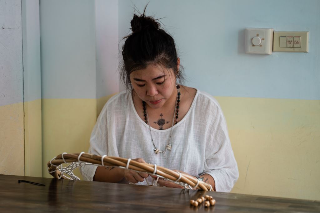 透過家鄉的素材,如:漂流木、種子、動物羽毛等等,結合設計美感,將祝福編織在一張張捕夢網上,讓每個人都能夠伴著好夢入睡。