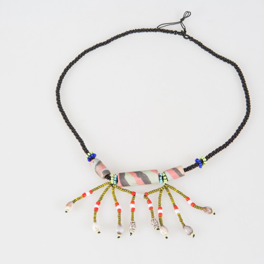 在撒奇萊雅中的墨綠色代表民族精神,運用小珠編串成細長的流蘇,有著復古的時尚美。