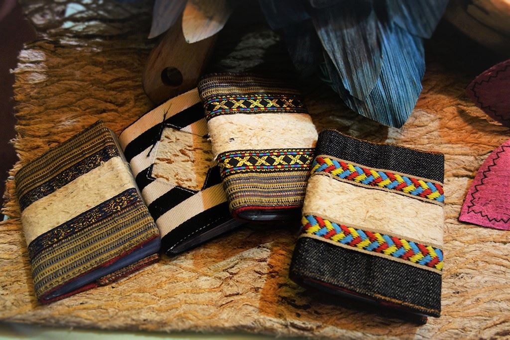 來自大自然的樹皮,經過清洗、敲打、曬乾等多個步驟,製作成富含特色的名片夾。