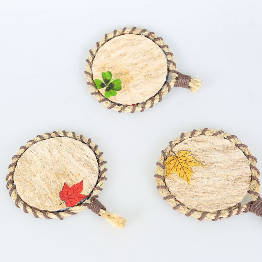 來自大自然的樹皮,經過清洗、敲打、曬乾等多個步驟,製作成富含特色的杯墊。