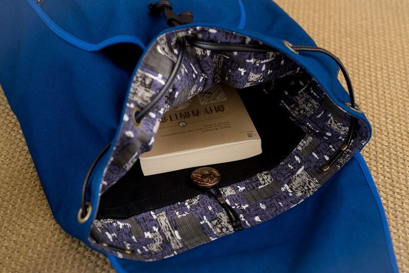 上開式包束口後背包,獨特銅釦結合前口袋設計,方便小東西收納,手工縫製背帶,可負重5kg~8kg,可攜帶A4大小資料夾。