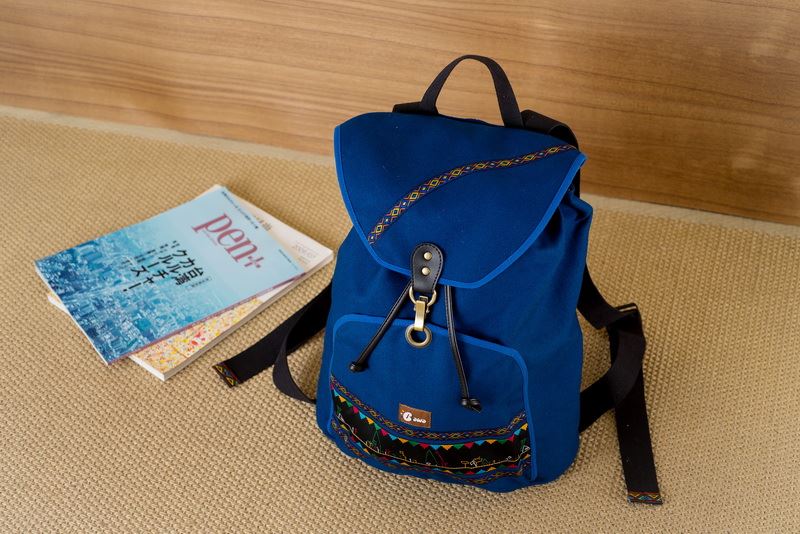 使用獨有花蓮生產製造傳統花紋花布製成後背包。