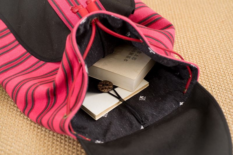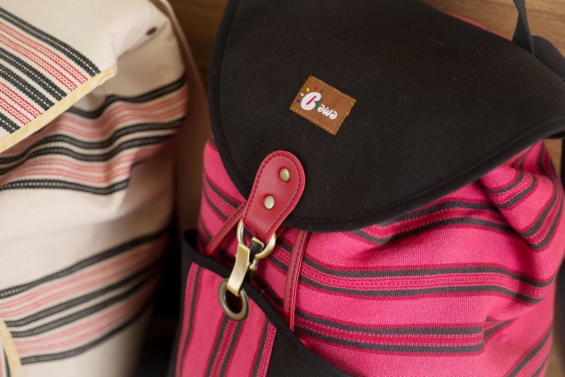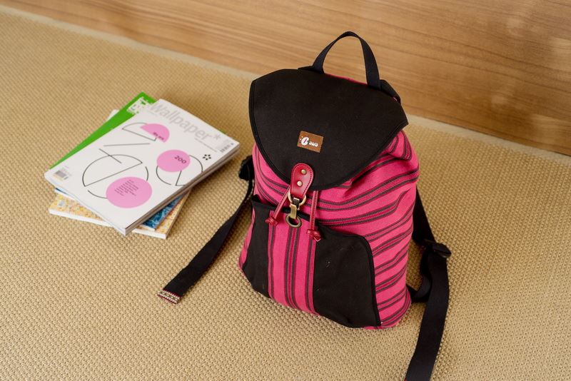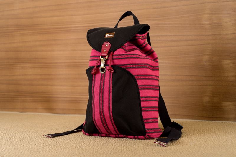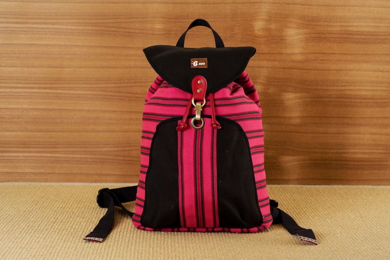 使用獨有花蓮生產製造傳統花紋花布製成後背包。