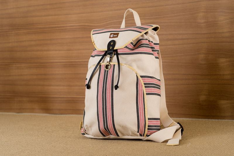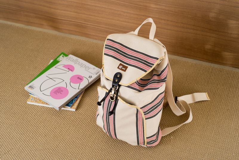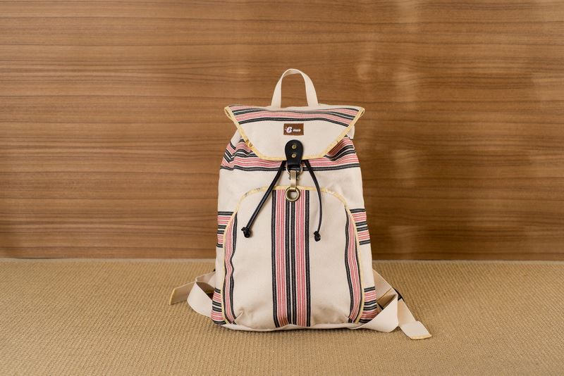 使用獨有花蓮生產製造傳統花紋花布製成後背包。