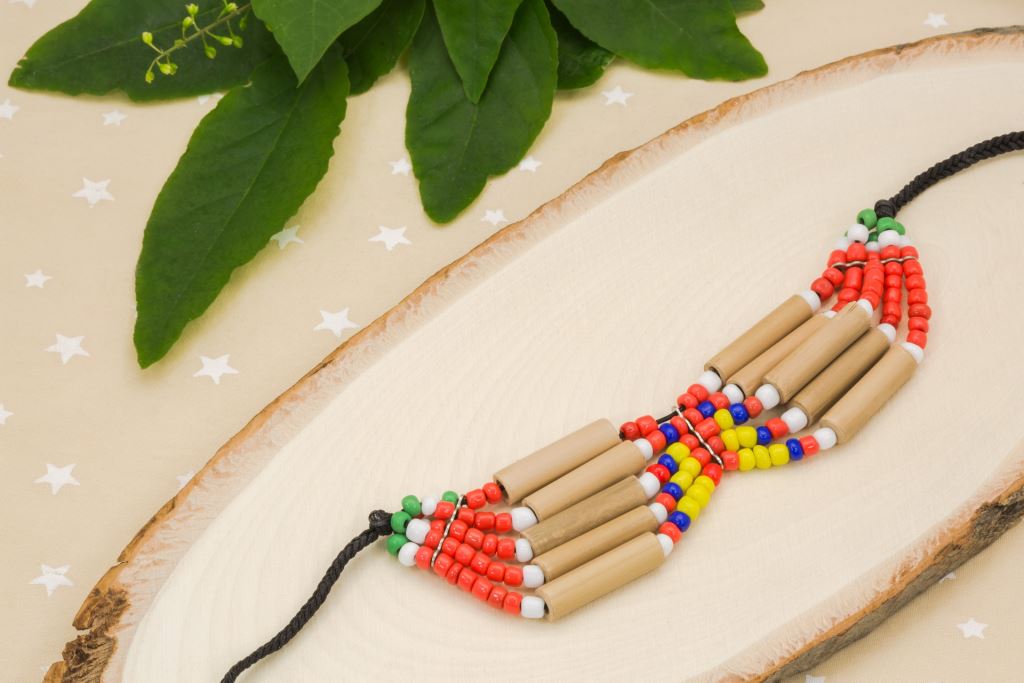 做工細膩,完美融合箭竹跟彩珠的色彩。