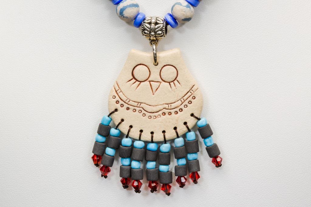 老師想要將不同族群文化互相融合的意涵,表達在作品中,透過自學原民手工藝,希望經由陶珠、陶器等作品,可以將自己的心意放在裡頭,像是熱賣商品「喜咕咕」系列,裡面有著醒目的貓頭鷹,其實貓頭鷹在鄒族中,代表了報喜鳥,充滿了滿滿正面能量。