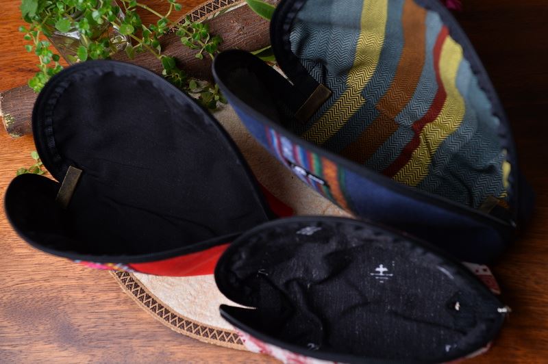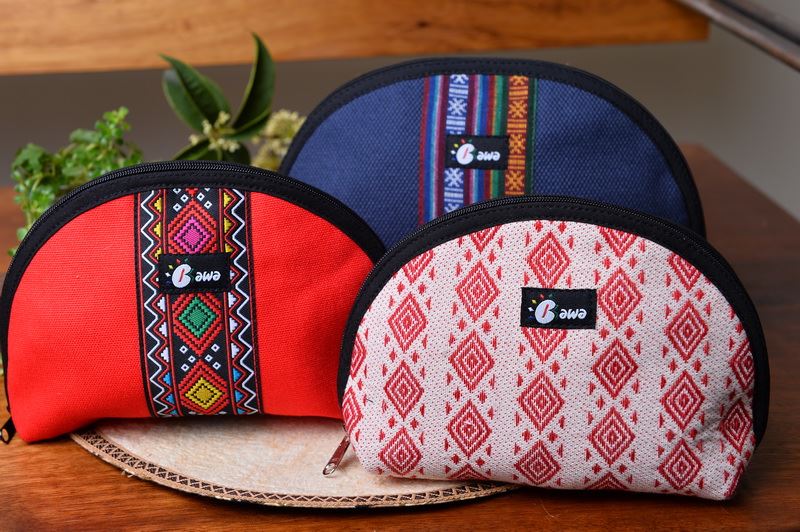 使用獨有花蓮生產製造傳統圖騰花紋布製成,內裡棉布柔軟材,可輕易折起或當作包中袋收納小物。