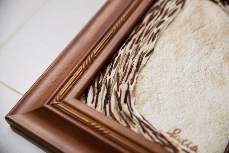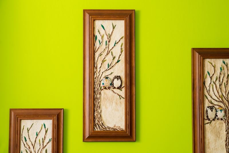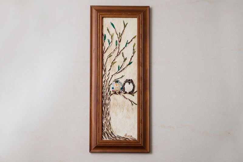 使用樹皮傳達意境,畫中的貓頭鷹,如同準備要帶給人們好運一般地留在枝梢上,整幅掛畫全採用樹皮創作而成,把樹帶入家中,自然又不失精美。
