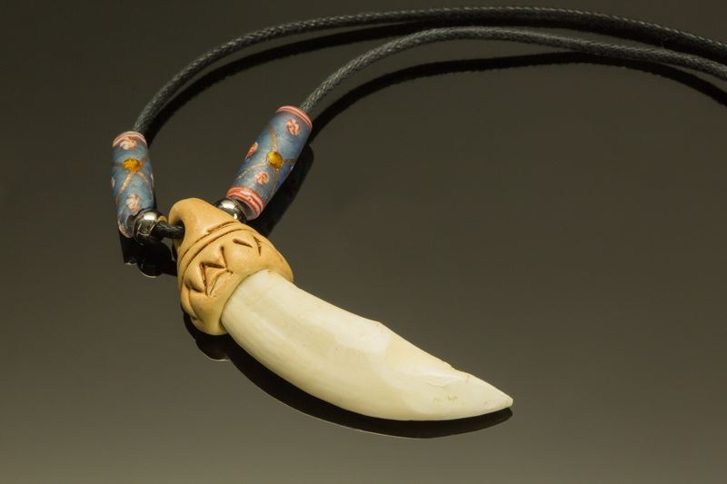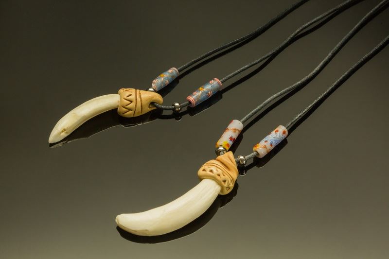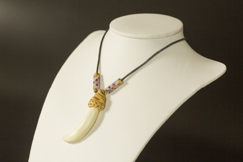 山豬牙與琉璃珠搭配成驚喜樣貌