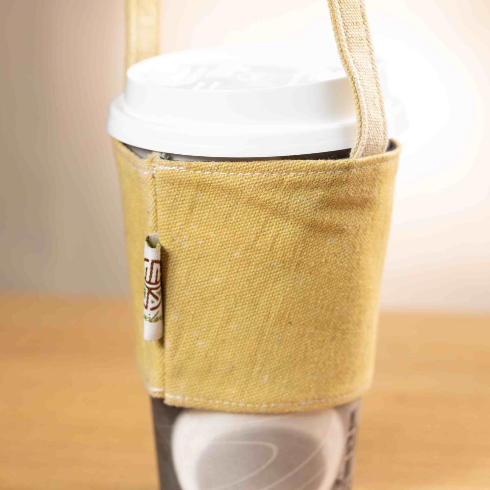 能裝進各種杯身的杯套,搭配棉布的舒適手感。