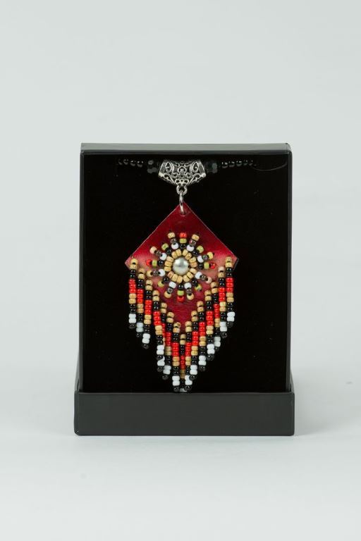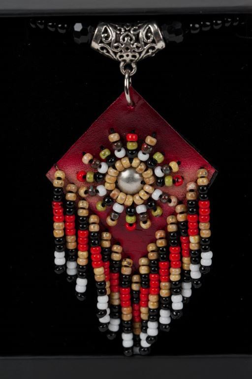 陳晏甄老師以純手工及天然素材,創作檳榔娃娃系列、情人袋、酒袋、無患子手鍊、皮雕項鍊、太陽福袋、海盜帽、樹皮檳榔娃娃吊飾系列、束口袋等,創作靈感都源自阿美族傳統服飾配件,加上新的創作思維,以貝類素材排成原民圖飾,配合些許金工與皮革元件,創作出精美的阿美族工藝品,是市場上難得一見的原住民工藝品佳作。