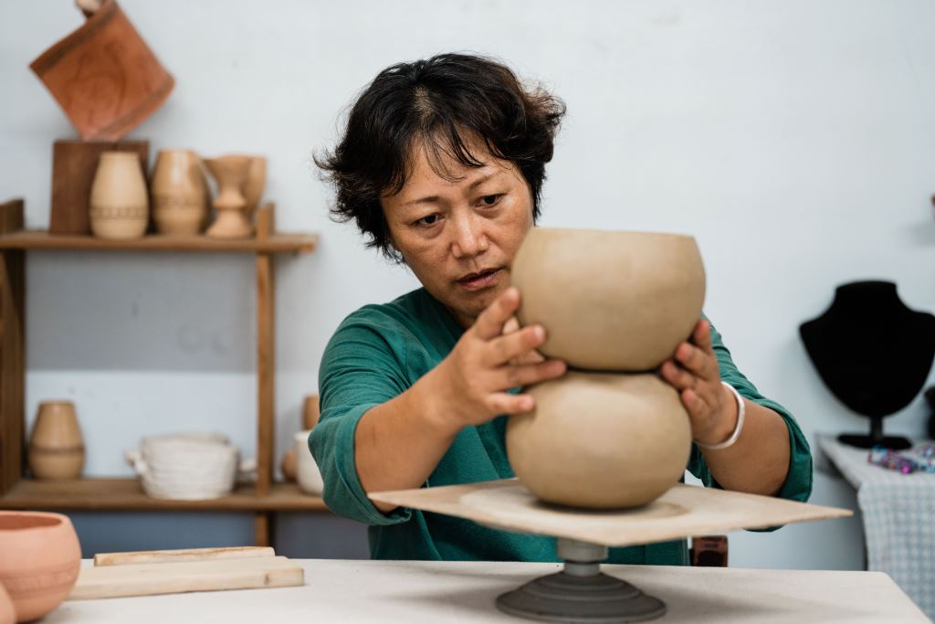 透過自學原民手工藝,經由陶珠、陶器等作品,將自己的心意放在裡頭。