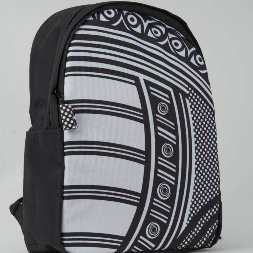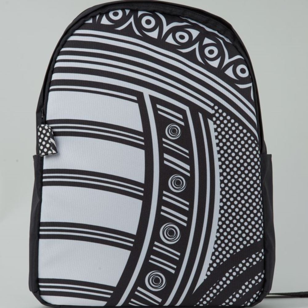 代表阿美族的山與海的線條、菱形標記代表祖靈以此圖紋找到我們,透過創作喚醒族人對過去生活記憶是最大的心願。