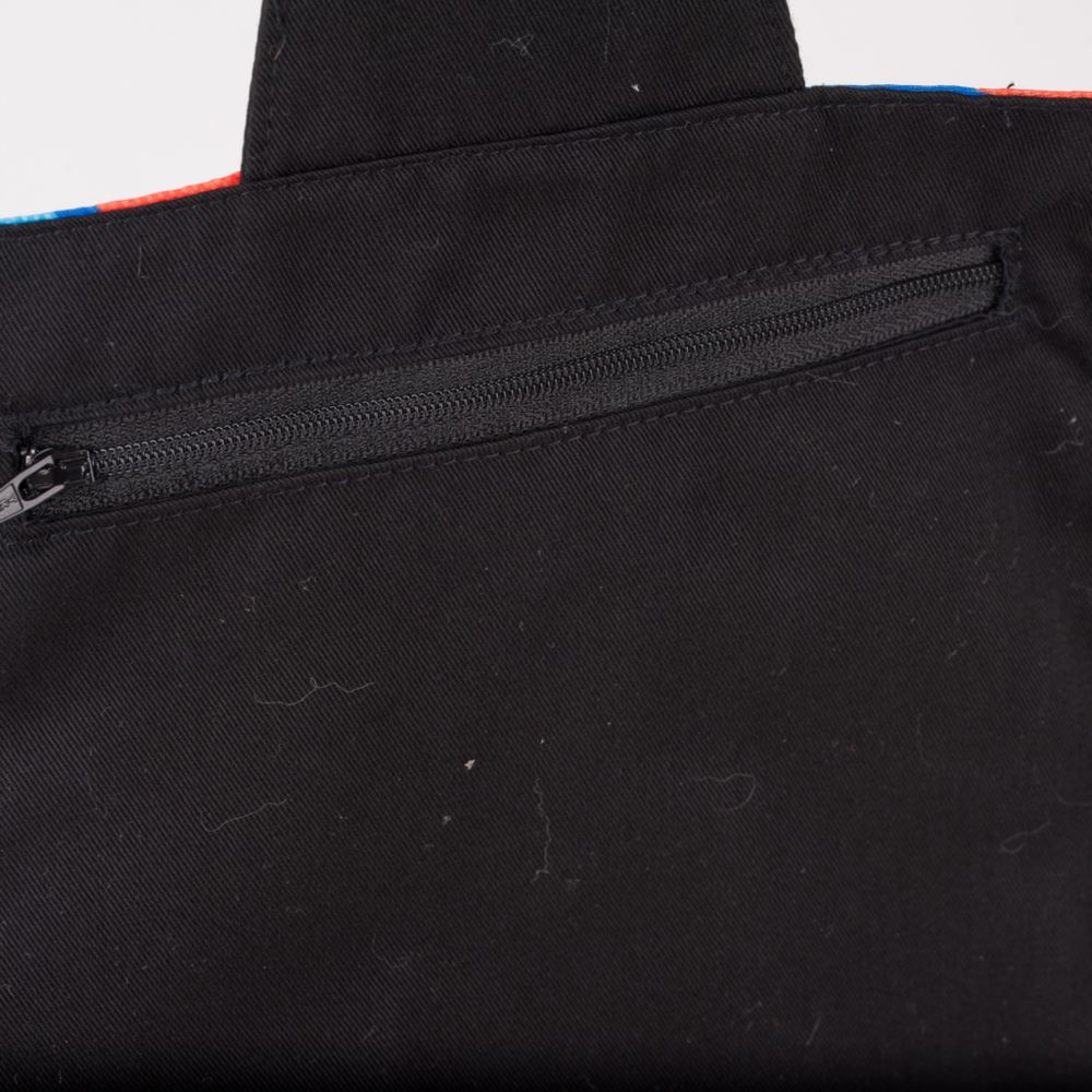 拉鍊的地方除了特別用布料做了保護,也同樣印有特色花紋