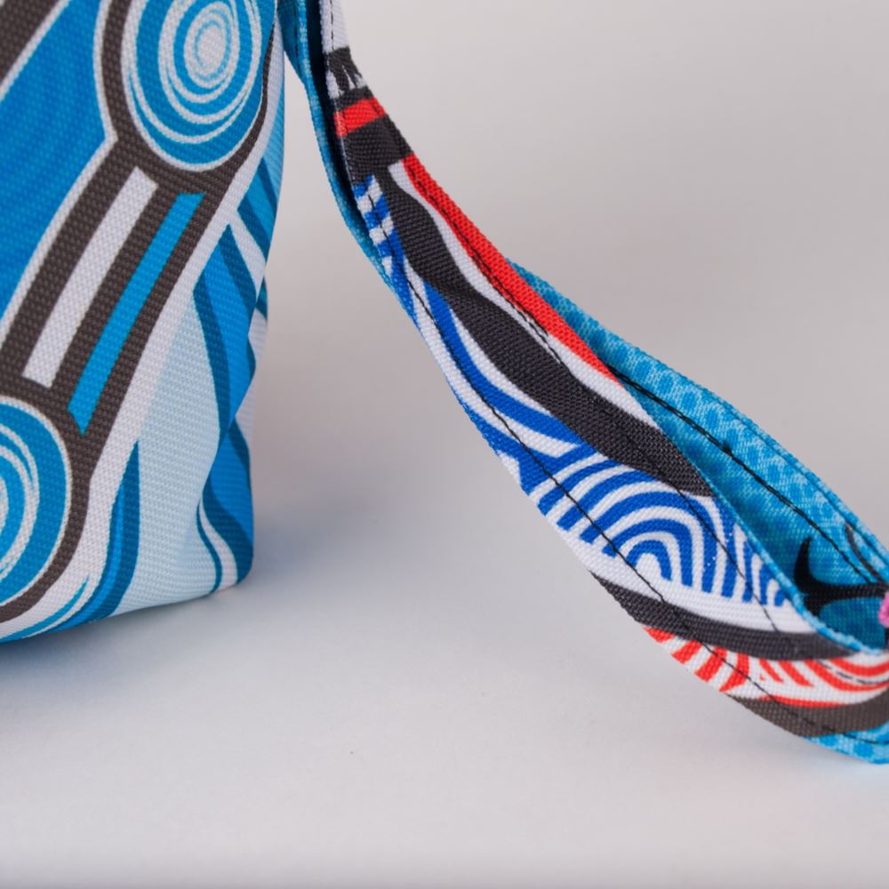 代表阿美族的山與海的線條、菱形標記代表祖靈以此圖紋找到我們,透過創作喚醒族人對過去生活記憶是最大的心願。