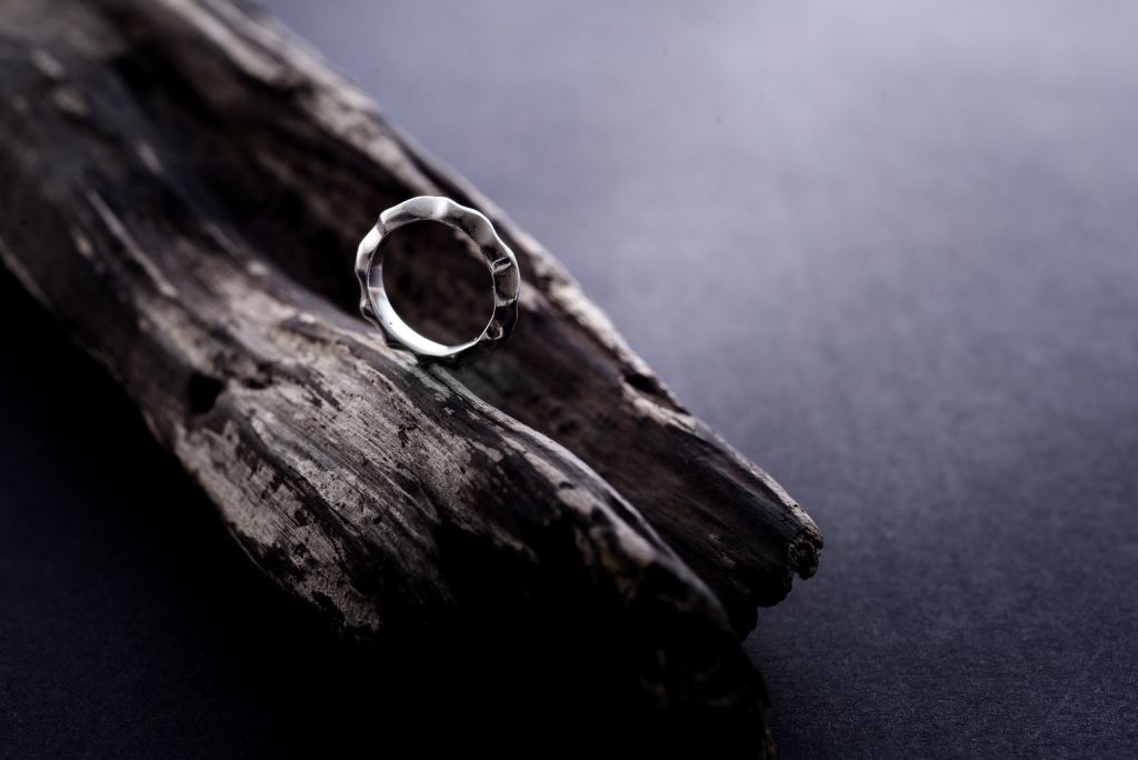 窄版戒環配上不規則波紋,呈現簡約的線條