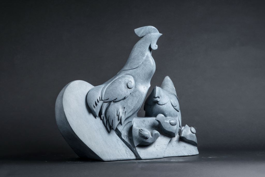 獨一無二的石雕,細膩的刻畫出每一隻雞的線條
