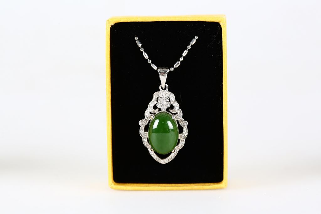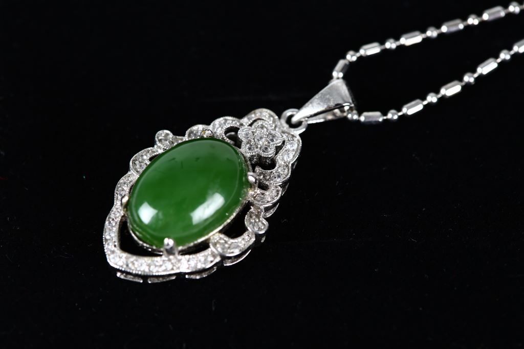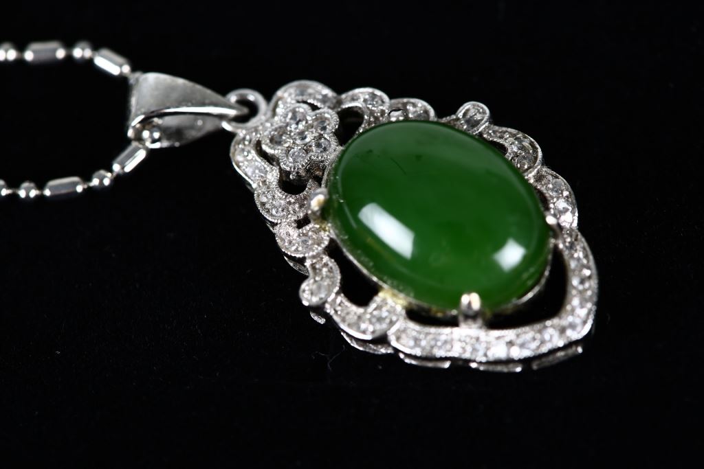 材質 : 硬度5.5-6.5、菠菜玉、925K底座人工鑽