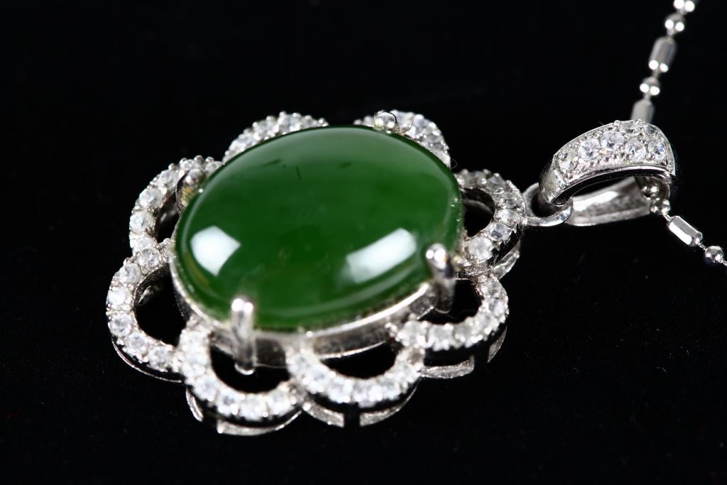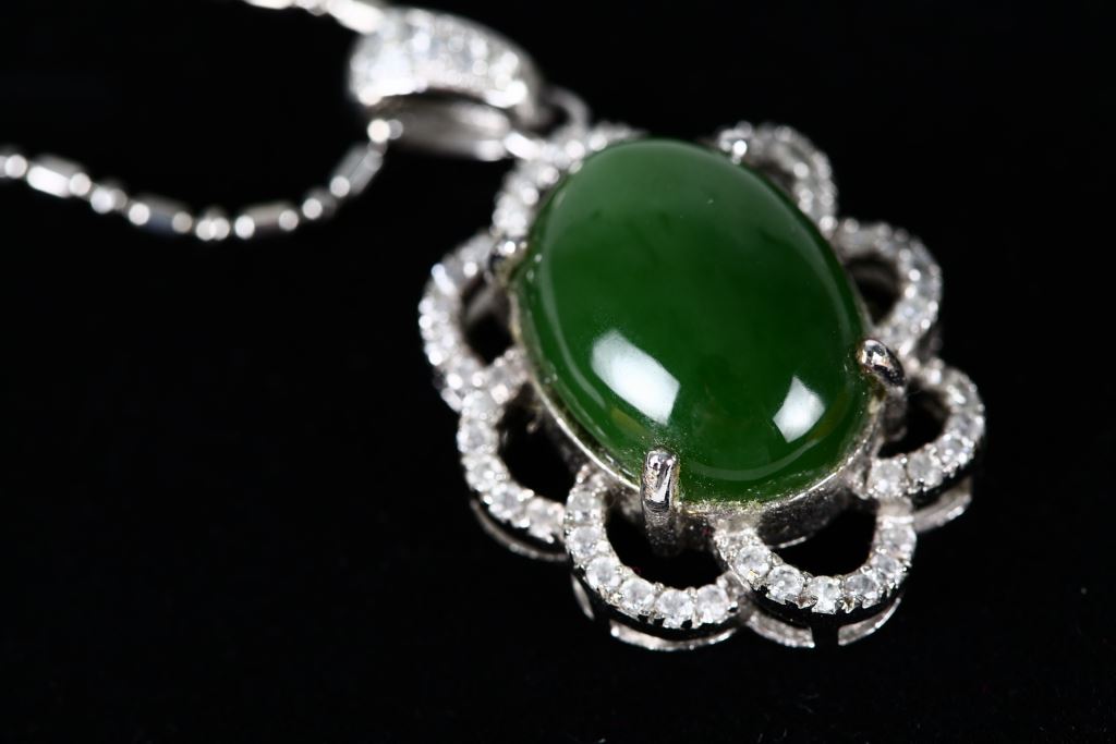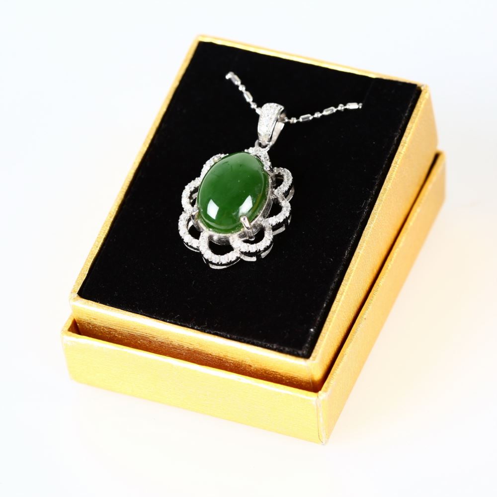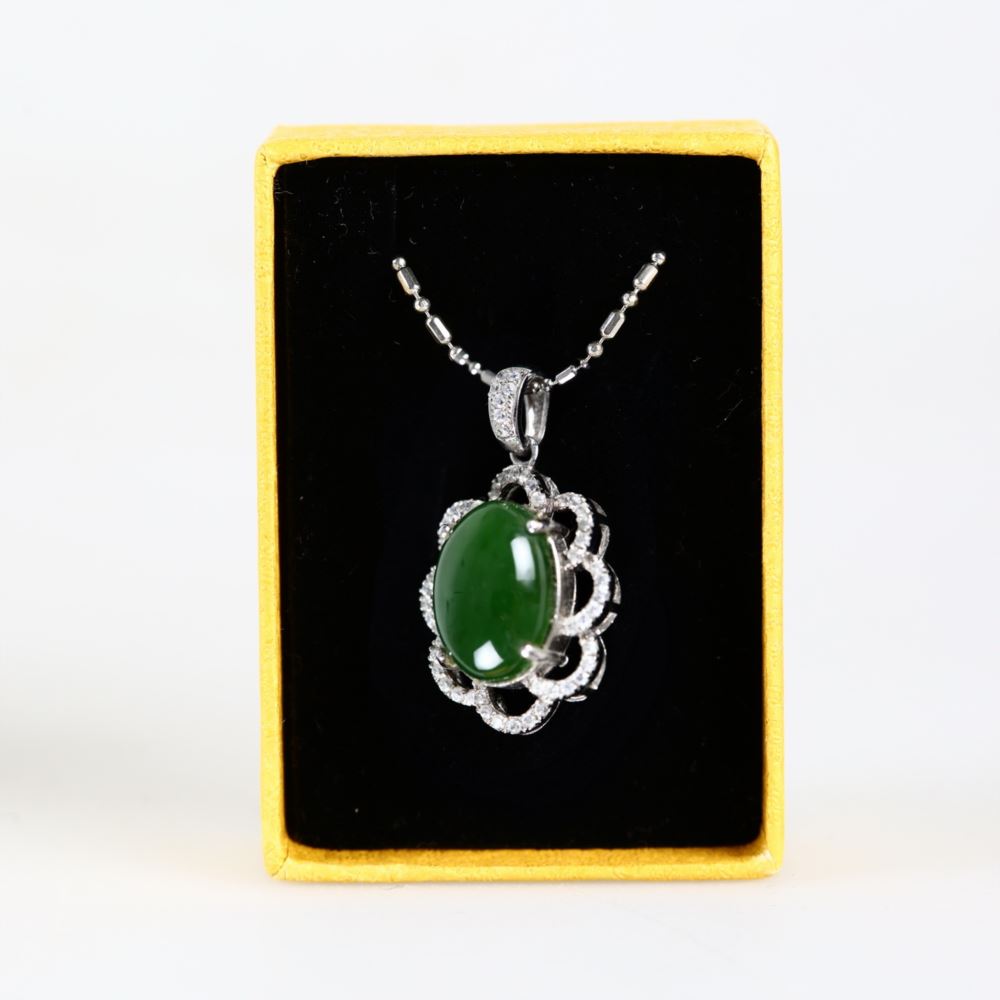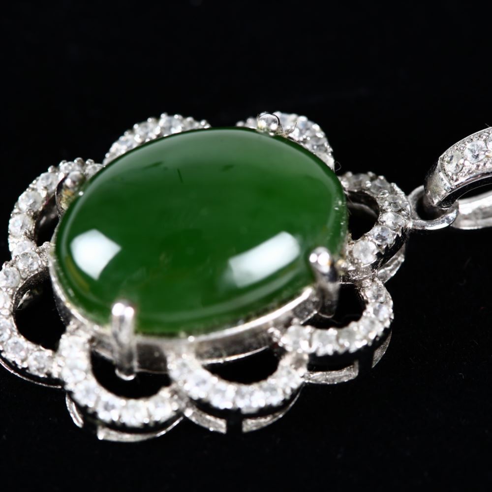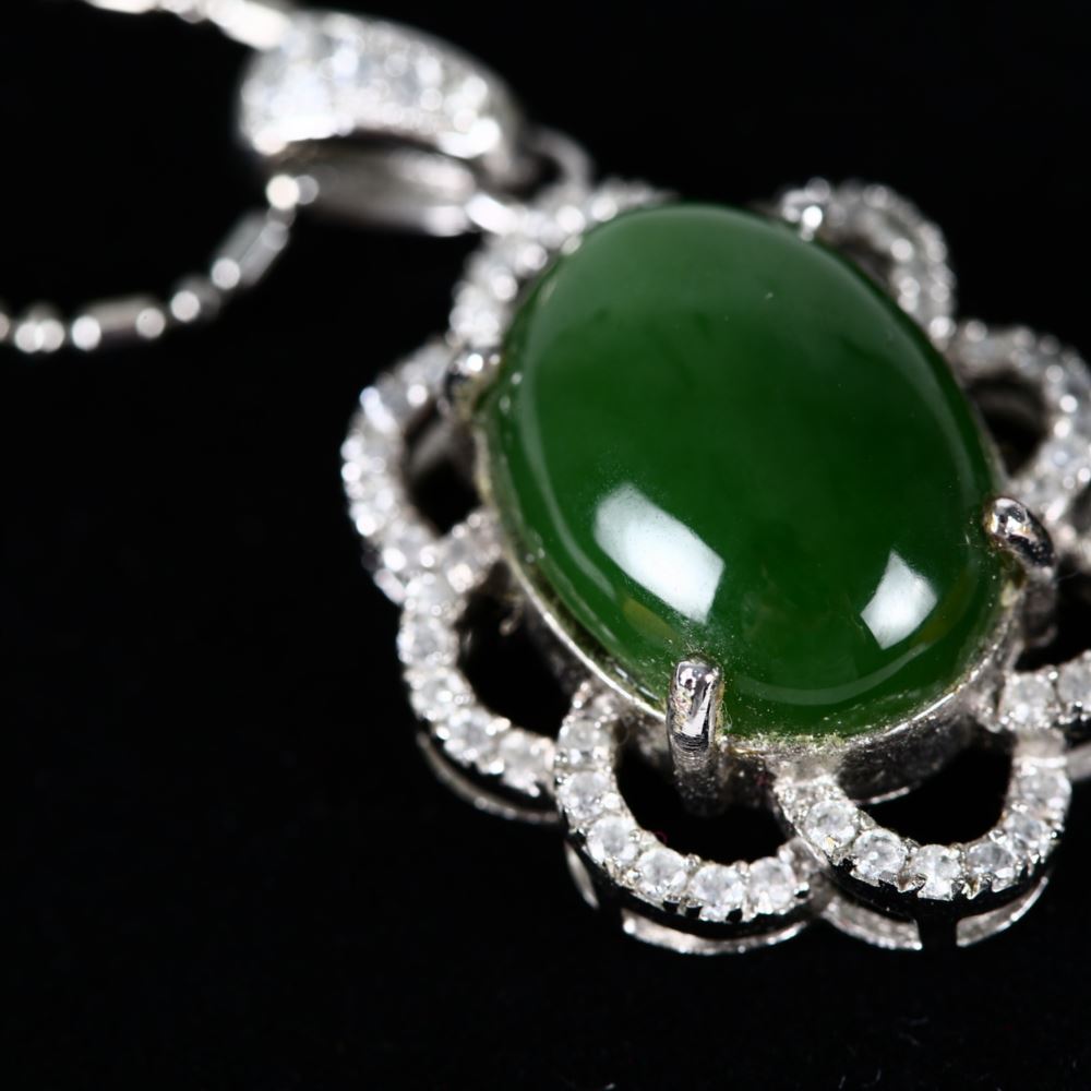 材質 : 硬度5.5-6.5、菠菜玉、925K底座人工鑽