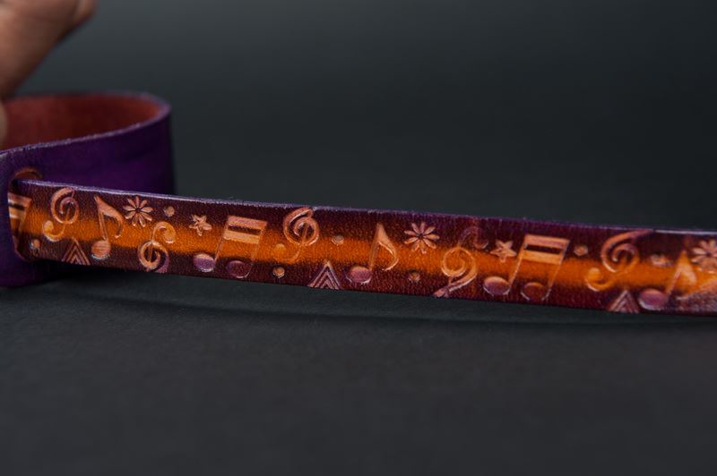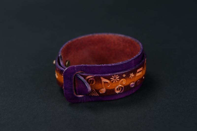 在牛皮的色塊刻上音符的圖案,彷彿有音樂在手上跳動著,讓你每天的生活辦旋律,快樂的過每一天,這很適合送給朋友,是一個很值得也很棒的禮物。