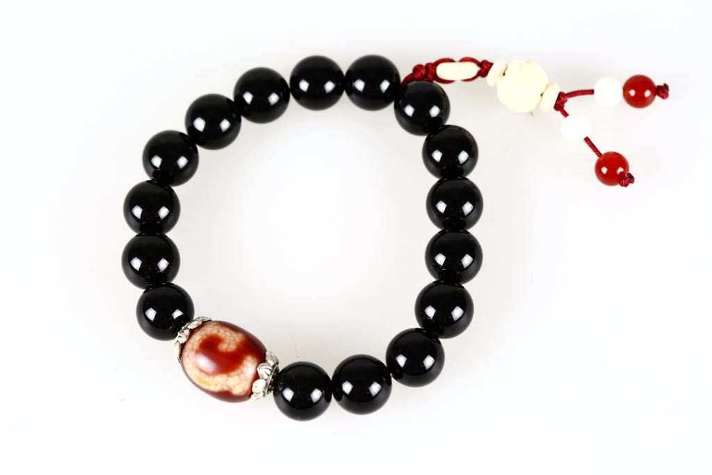 材質 : 天珠、黑玉髓、紅珠、硨磲珠。