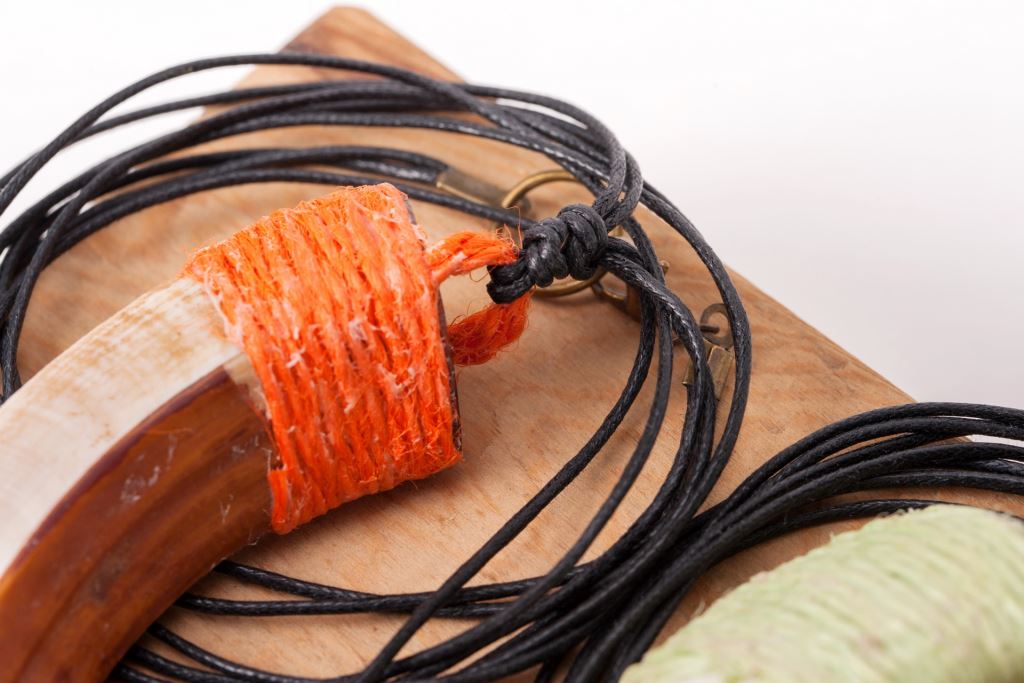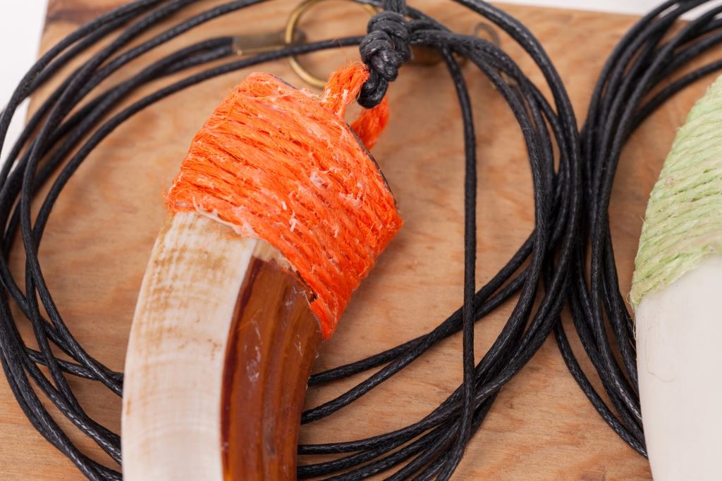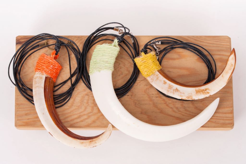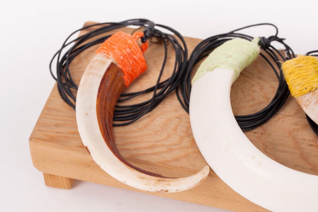 材質 : 山豬牙、金屬勾、綿線。
