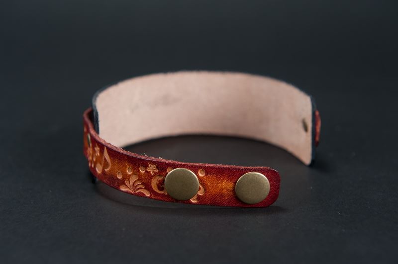 圖案設計全為伊浪老師自創的圖案雕法,線條自然,使用物性上色法,讓牛皮上的每一色塊皆不暈染,清晰可見的色彩分明。