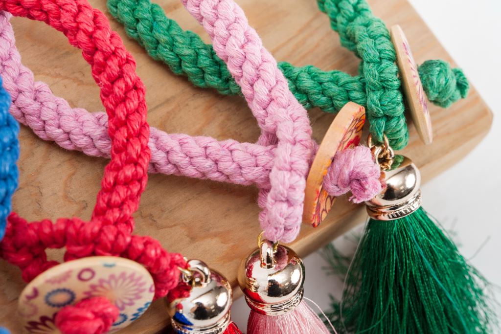 材質 : 麻線、扣環、飾片。