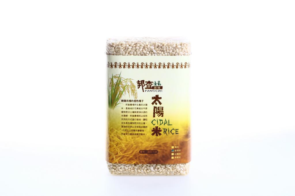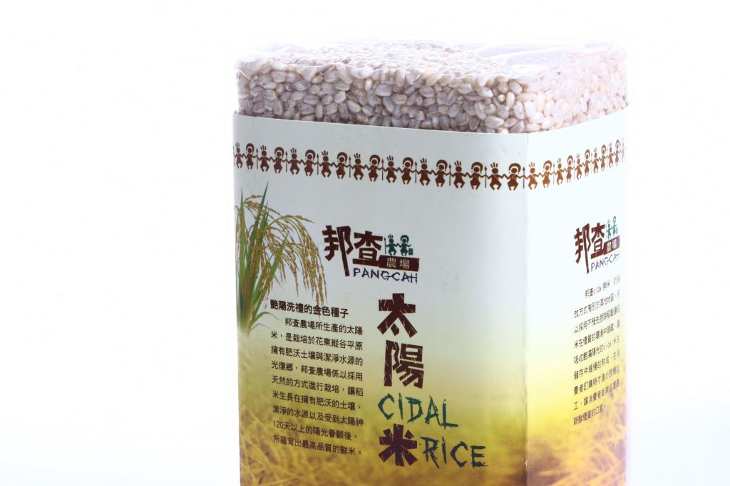 太陽-Cidal(阿美語)。在邦查,鮮米採用最傳統的乾燥古法-人工日曬乾燥,使每一米粒都能吸收飽滿的太陽溫度,讓每一位品嘗邦查太陽米的消費者能感受到阿美族人傳說中所賜與的陽光之米。「花蓮21號」胚芽米,熱飯香Q可口,冷飯的壽司口感更佳,保存了完整且均衡的稻米營養。