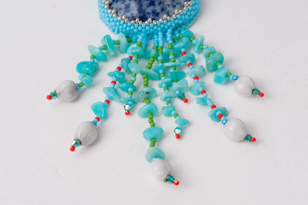 串珠技藝是各原住民族共通的工藝,不同族別會使用不同的配色與圖紋以呼應部落的傳統與特色,陳美玉小姐的串珠工藝是結合西式的配色概念,並採用進口的精美串珠作為製作的材料,進口珠有較多的色彩變化,色系也較為珠光明亮,可以為作品增添時尚的美感,這是不同於一般傳統串珠工藝品的特色,並在作品中採用傳統的薏苡珠,新式的配色加上傳統的飾物,配合原民的串珠手工藝,更能彰顯在地的原民特色。陳美玉女士製作的串珠作品,以用色鮮明亮麗為特點,作品構圖參照原民的圖紋與樣式,在粗獷的原民風格中,以薏苡珠搭配各式色系串珠營造細膩的圖騰美學,堪為原民串珠手工藝的代表作品。