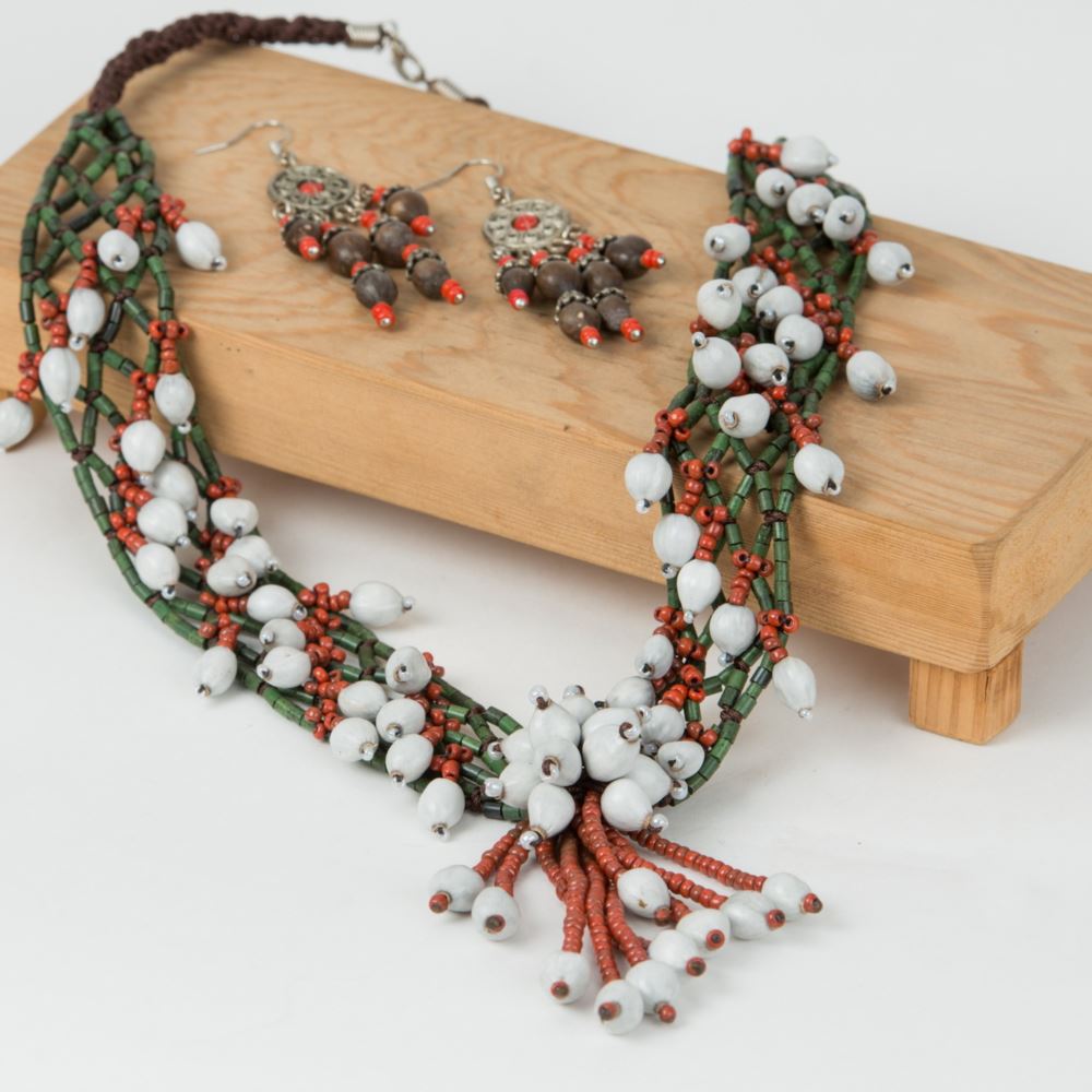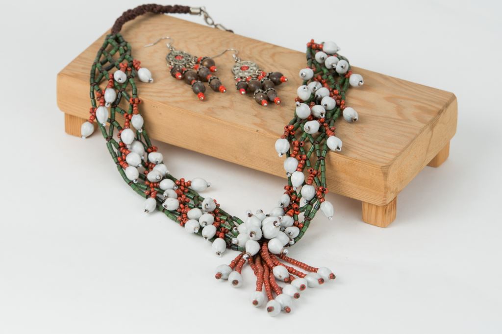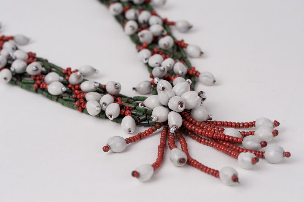 以在地原生植物的果仁薏苡珠(鴨母珠)做成原民風格的精美飾品,如手鍊、項鍊、耳環、別針,薏苡珠在女性飾品上都有很多表現的空間,陳美玉女士有開設課程推廣教授薏苡珠飾品DIY串珠的體驗課程。