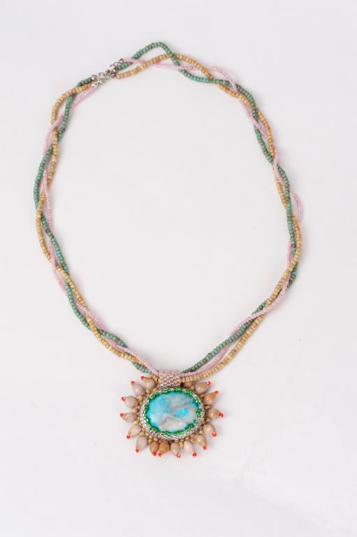 以在地原生植物的果仁薏苡珠(鴨母珠)做成原民風格的精美飾品,如手鍊、項鍊、耳環、別針,薏苡珠在女性飾品上都有很多表現的空間,陳美玉女士有開設課程推廣教授薏苡珠飾品DIY串珠的體驗課程。