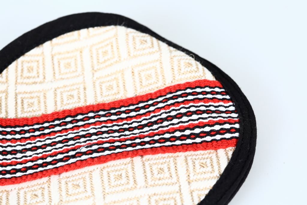 黑邊素色菱型底圖,原民圖紋設計。