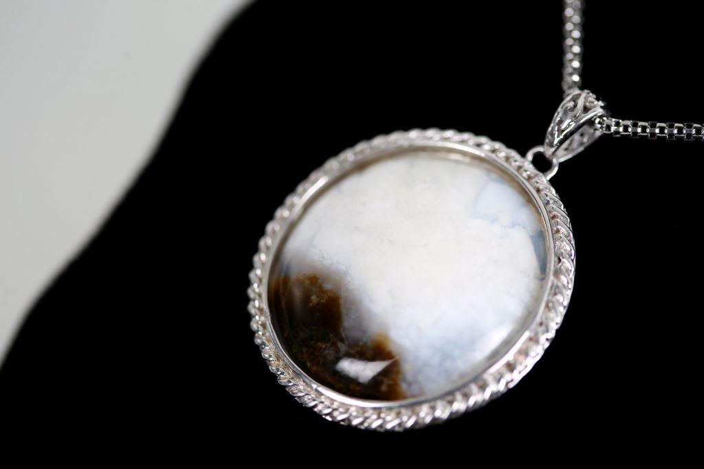 雪花玉銀飾吊墜項鍊組(大)