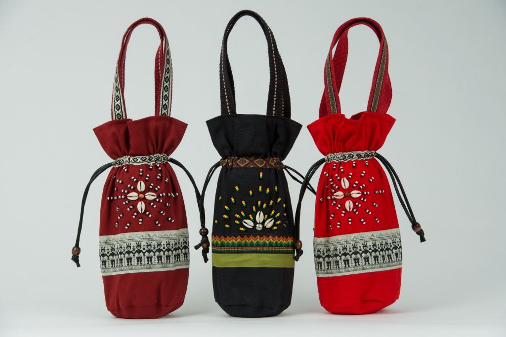 以純手工創作檳榔娃娃系列、情人袋、酒袋、無患子手鍊、皮雕項鍊、太陽福袋、海盜帽、樹皮檳榔娃娃吊飾系列、束口袋等,以上工藝品創作靈感都源自阿美族傳統服飾配件,加上新的創作思維,以貝類素材排成原民圖飾,配合些許金工與皮革元件,創作出精美的阿美族工藝品。
