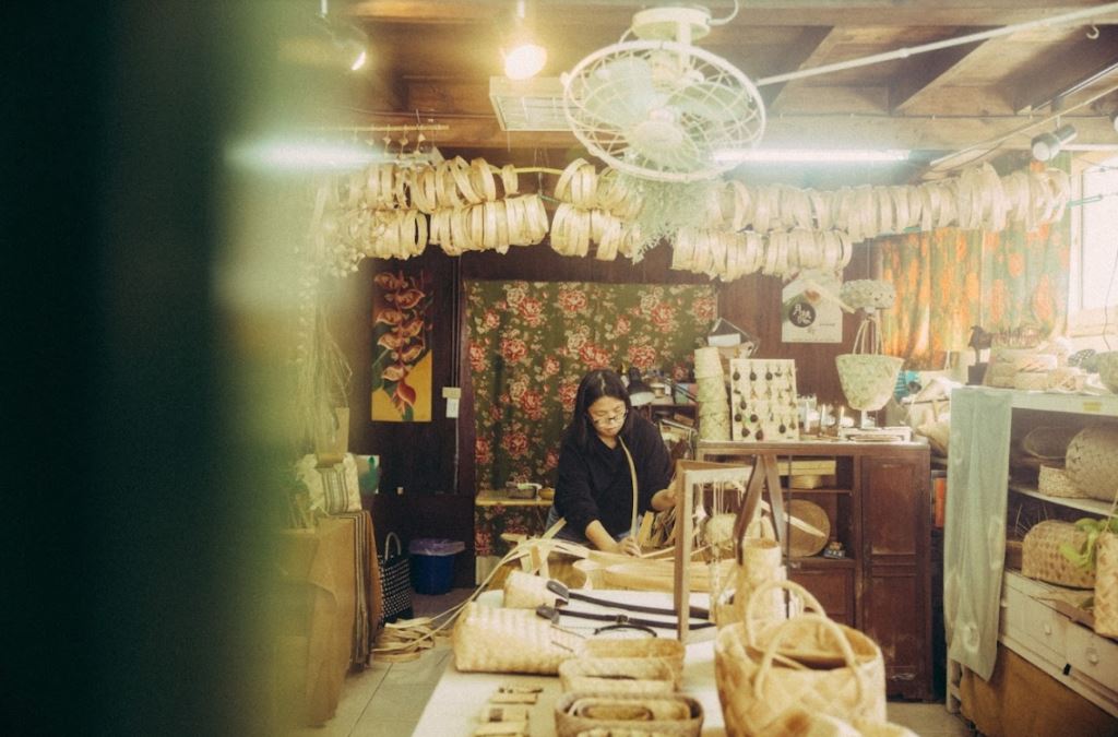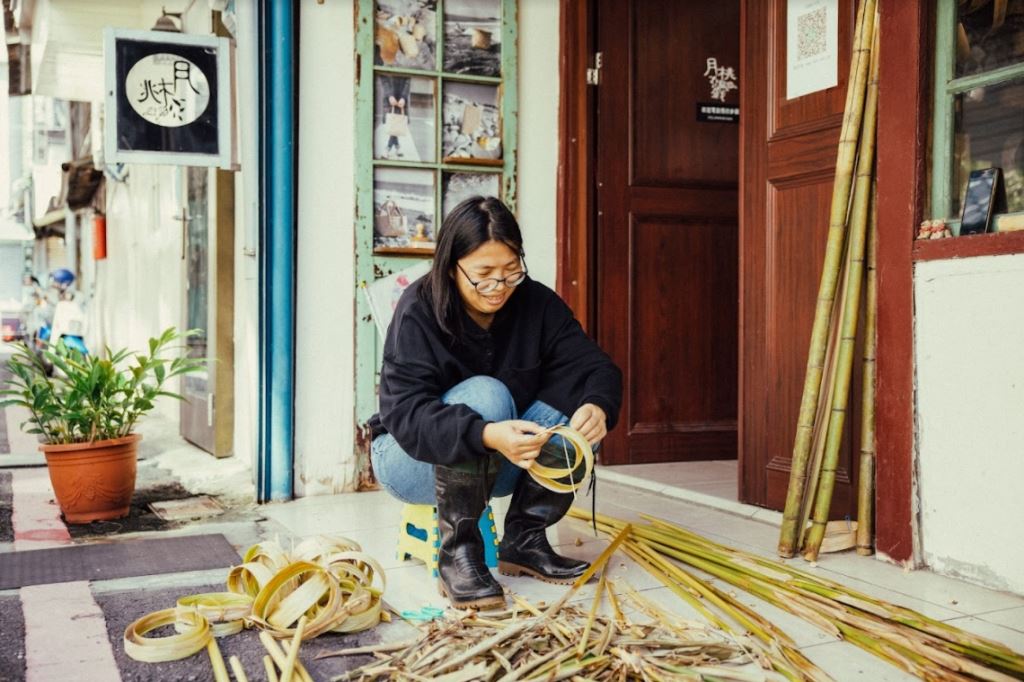 若不仔細觀察,很難發現這間隱身在市區小巷內的傳統工藝店,店內昏黃的暖光傳來淡淡的植物香氣,而外頭則擺滿整理到一半的「素材」。