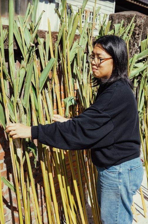 (採收回來的月桃對芳琪來說都是相當珍貴的素材,一點也不能浪費)