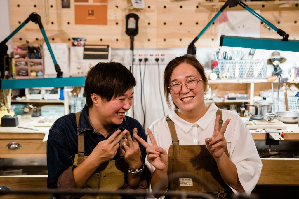 姐姐若珊(Panay)和妹妹若琳(Api)從小就喜歡玩創意,Api 因為喜歡藝術,所以大學專攻文化藝術方面,而Panay大學讀的則是公共衛生,研究所更是到了法國就讀。沒想到因為在法國接觸了很多藝術圈的朋友,便在法國展開了Panay的藝術之旅。在法國待了11年的Panay,2015年在法國開了屬於自己的開工作室,從事日式布花、摺紙藝術,將摺紙呈現在小飾品上,從一開始的跑市集販售,一直到參展、寄賣,甚至有機會與法國平面藝術家交流學習。因為在法國的經驗,讓若珊放棄了公共衛生領域,同時也因為父親的身體狀況不佳而而回到台灣,而後因緣際會下認識了後山金工的老師,便開始學習金工。