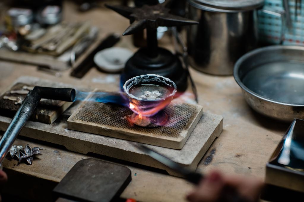 (金工創作的過程,不只是敲敲打打,還需經過火的淬鍊。)