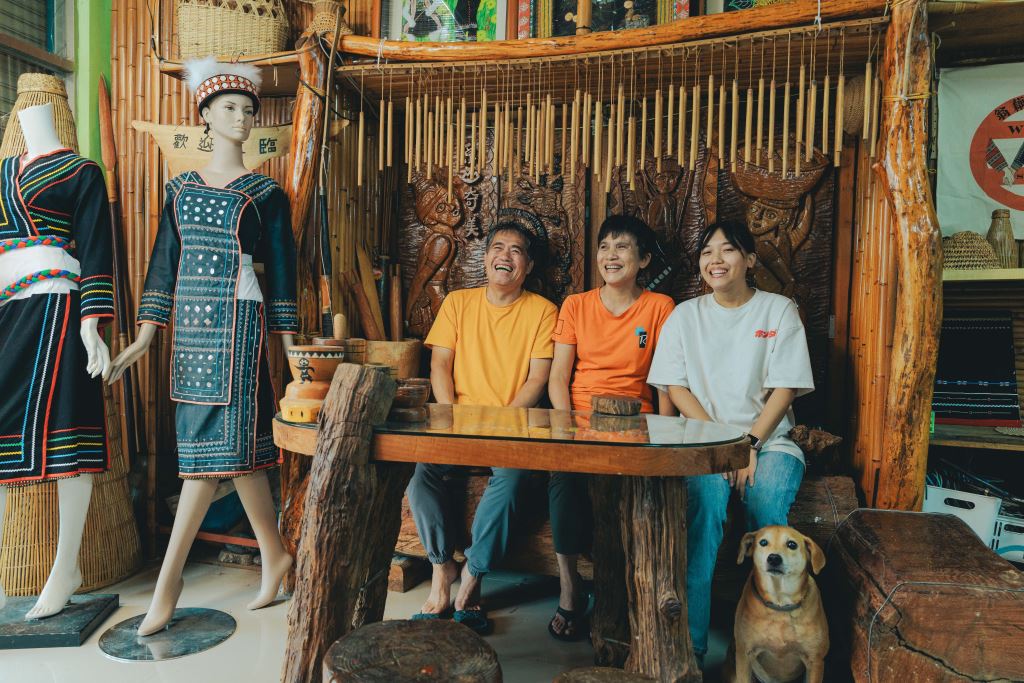 翁藕的工作坊不僅是一個創作的場所,更是一個充滿靈感與交流的空間。店內有許多經過精心設計的小角落,每一個細節都蘊含著翁藕和karo師丈的心血。特別是工坊的會客空間,無論是與朋友閒聊或是與客人洽談,都能感受到那份溫馨與舒適。這樣的環境讓人們不僅能夠欣賞到美麗的傳統服飾,還可以感受到阿美族文化的氛圍。